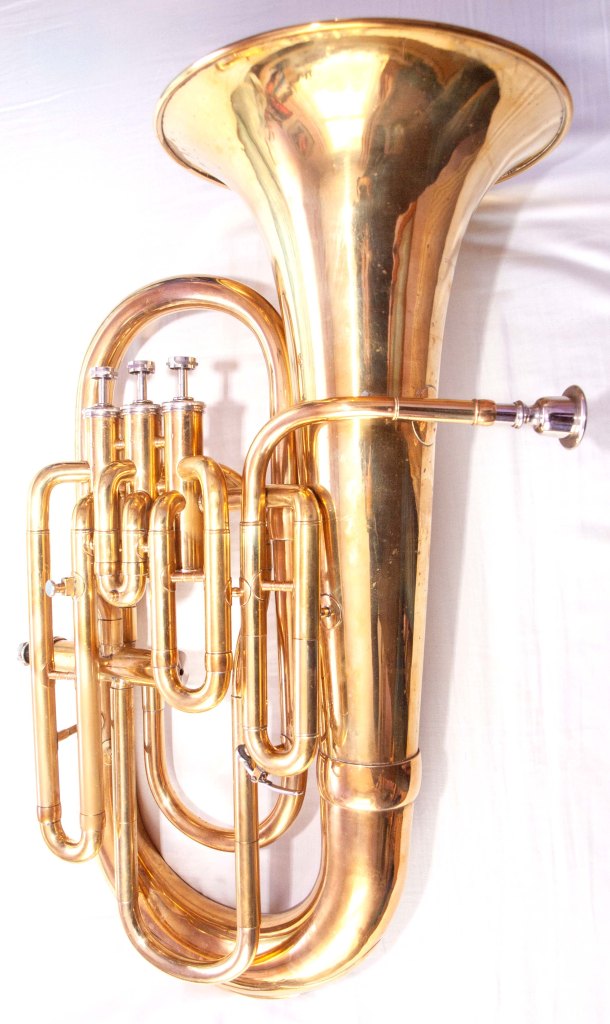 The Euphonium is a medium sized 3 or 4 valved brass instrument, often playing the bass part in band. It is very like the Baritone horn.